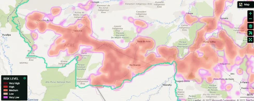 Por Victor Lebre Levantamento de inteligência artificial se baseia em dados de desmatamento do ano anterior e aponta que Feijó é o município com maior área ameaçada no Estado. Leia mais: https://portalamazonia.com/noticias/meio-ambiente/acre-tem-quarta-maior-area-de-floresta-sob-risco-na-amazonia-legal-em-2023